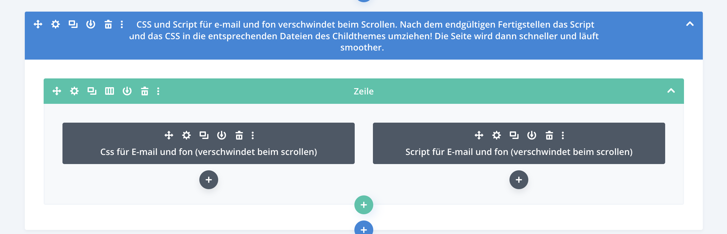 Standardmäßig verschwinden die E-Mail und Telefonnummer wenn man 600 px gescrollt hat. Beim Zurückscrollen erscheint sie sofort wieder.