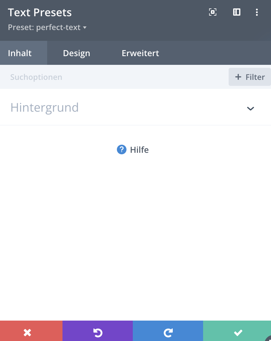 Auf allen Seiten, auch auf schon vorhandenen, Hat das Textmodul jetzt die Preset Variante, in unserem Fall „perfect Text“.