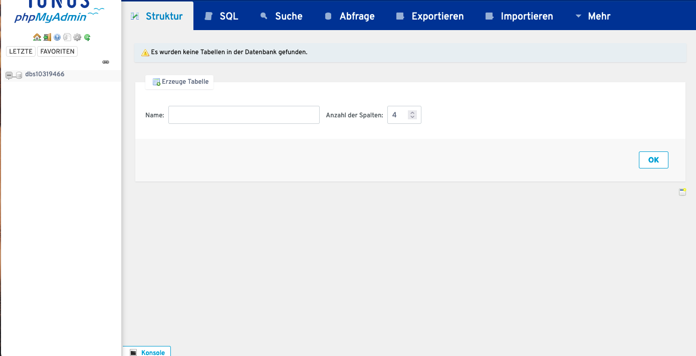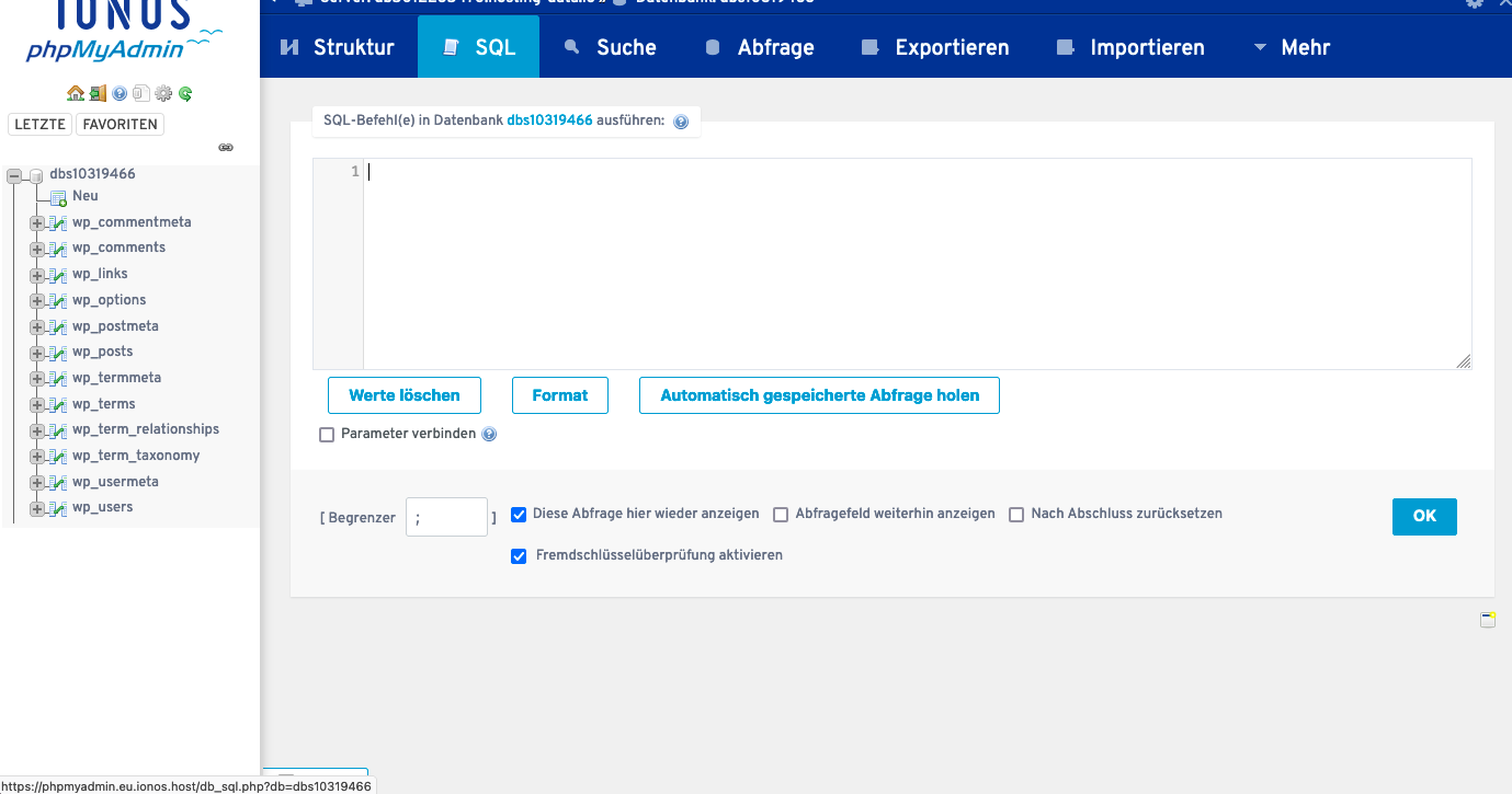 Wenn wir uns ganz sicher sind, dass wir uns nicht verschrieben haben, öffnen wir den Reiter SQL in der Daten Bank.