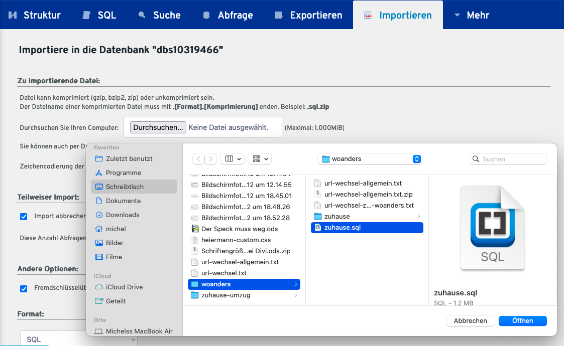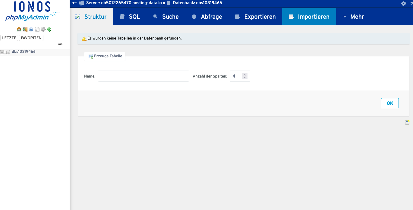 Mit einem Klick auf „Öffnen“ bestätigen. Auf der SQL-Seite nach unten scrollen und den Vorgang mit „ok“ bestätigen.