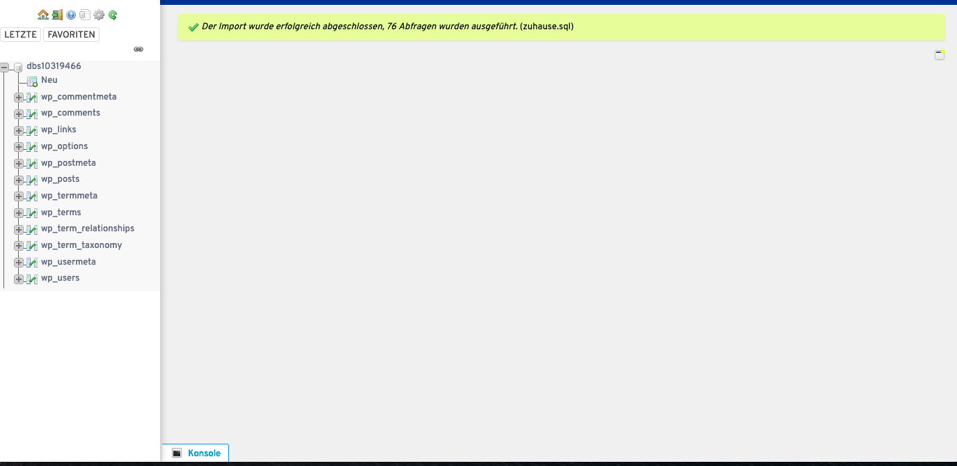 Wenn dieser Upload erledigt ist befinden wir uns bereits auf der Zielgeraden. Allerdings kommt noch die Veränderung in der SQL-Datenbank, vor der sich ungeübte sicherlich scheuen. Also genau aufpassen.