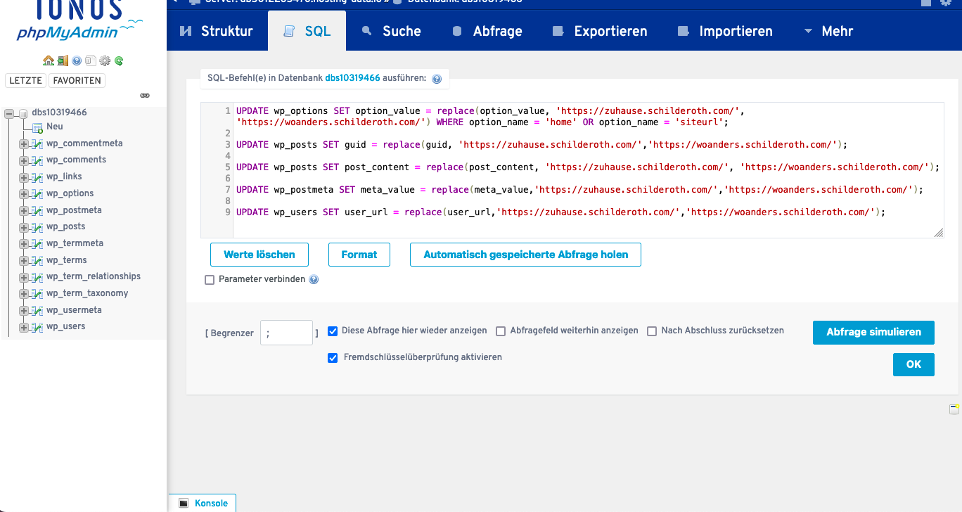 UPDATE wp_options SET option_value = replace(option_value, 'https://zuhause.schilderoth.com/', 'https://woanders.schilderoth.com/') WHERE option_name = 'home' OR option_name = 'siteurl';