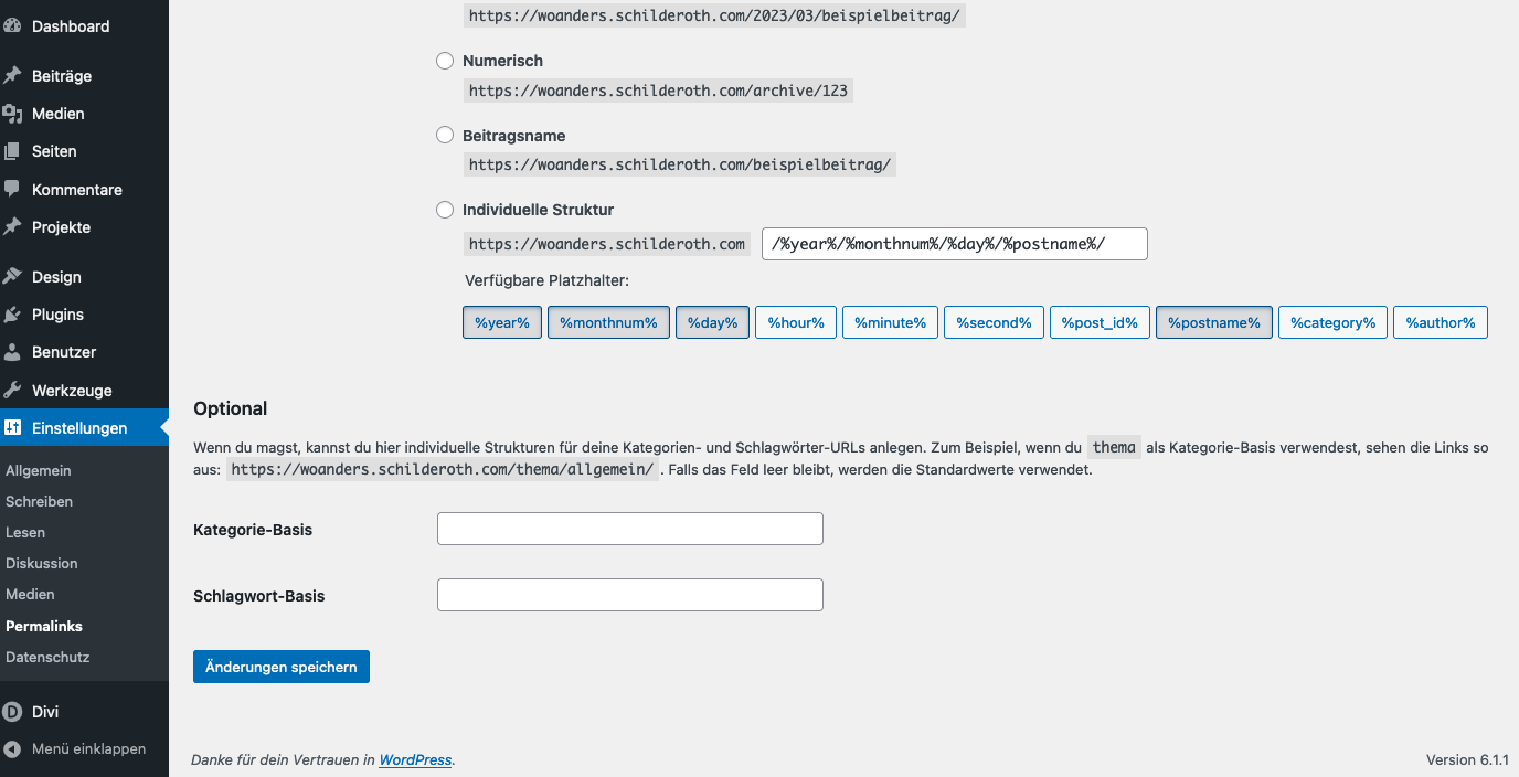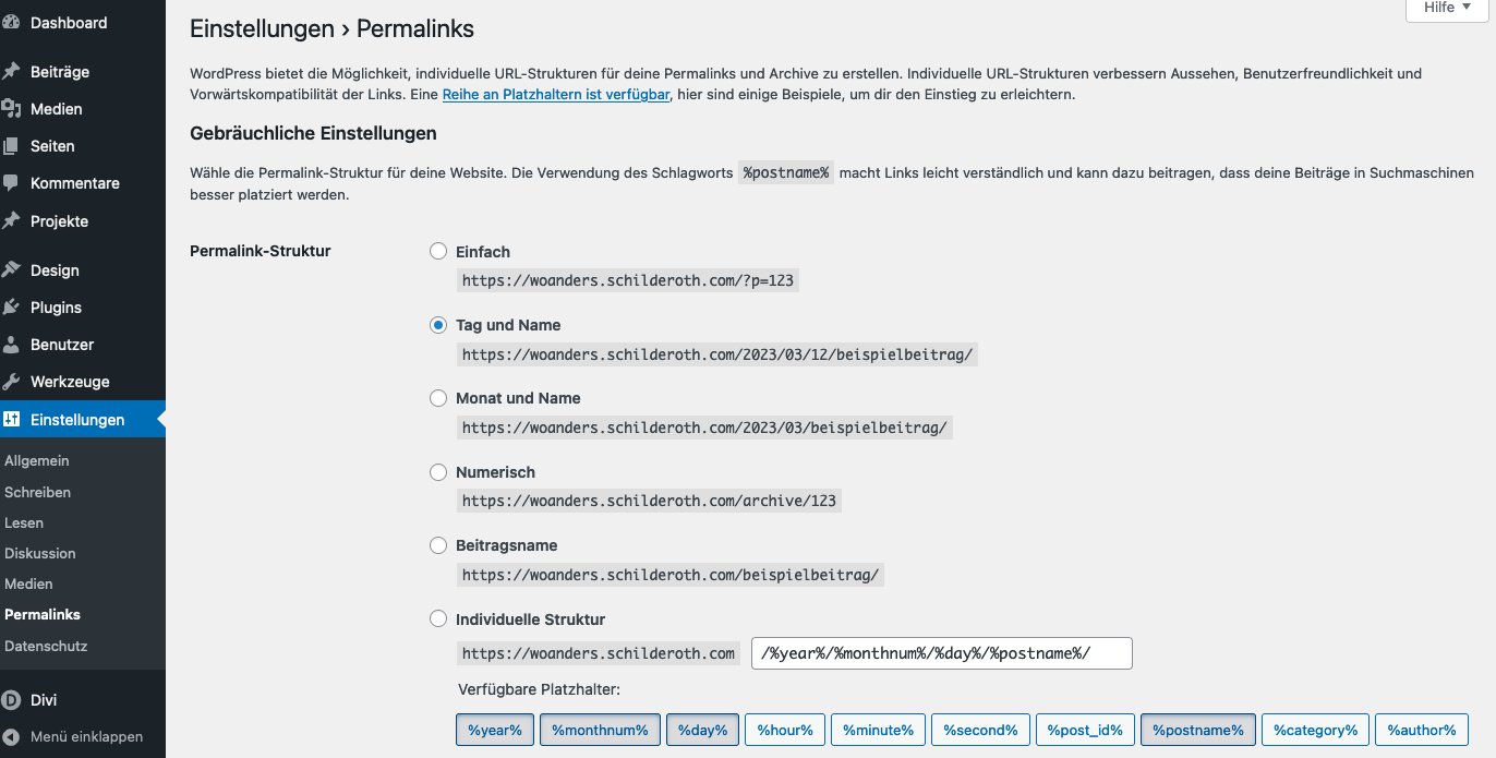 Als letzten Schritt müssen wir in WordPress die Permalinks aktualisieren. Dazu nur die Permalinks in den Einstellungen aufrufen und neu speichern, es sind keine Eintragungen erforderlich.