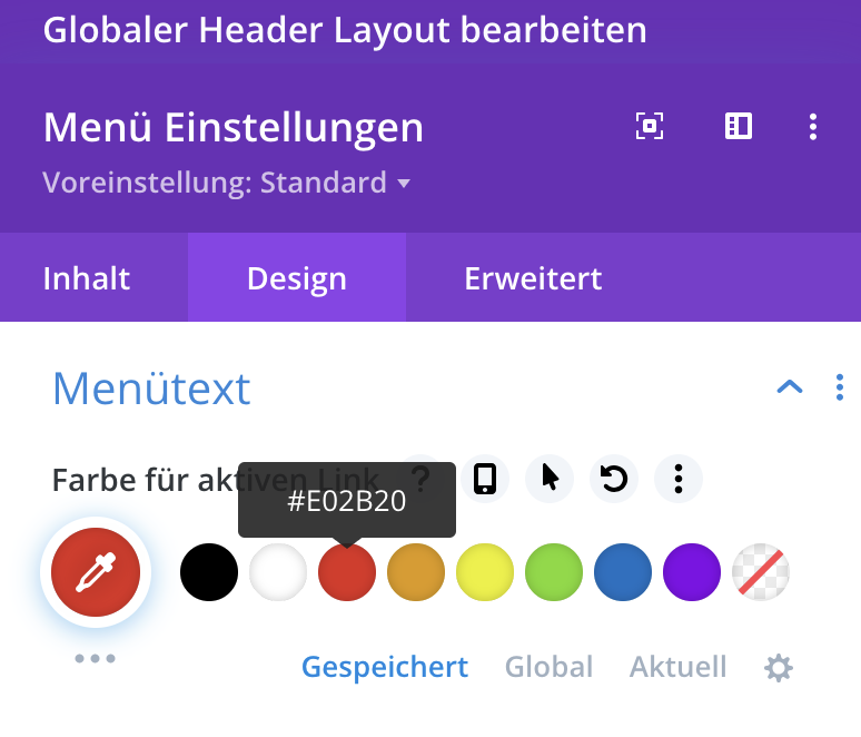 Menu Aktiver Link = rot