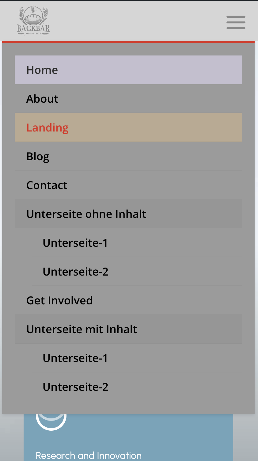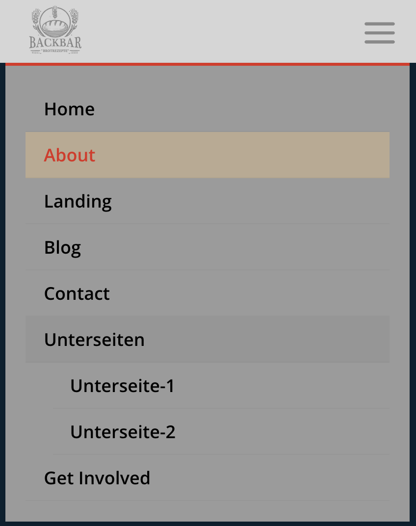 Mobile Menu mit sichtbarem „active Link“