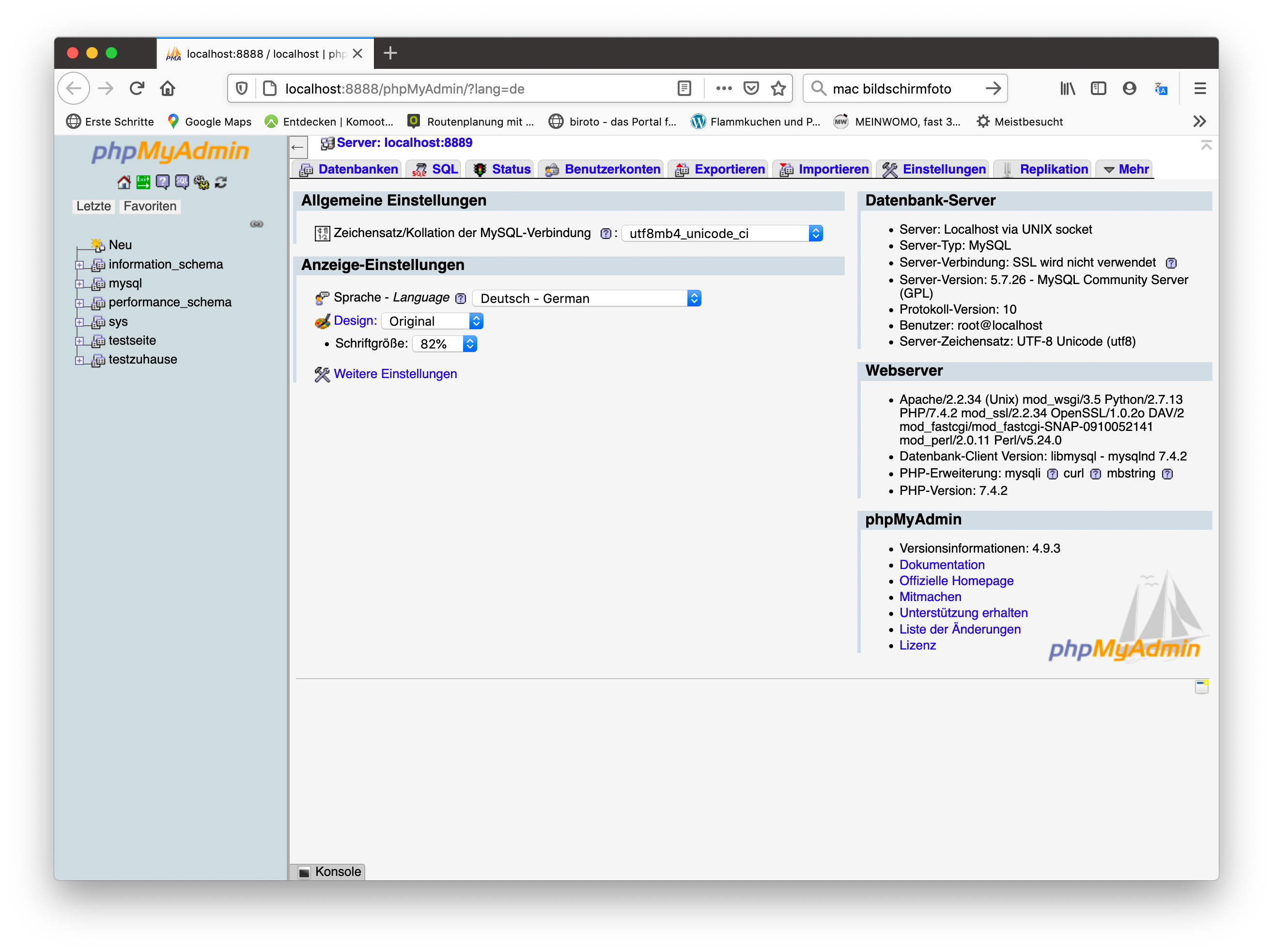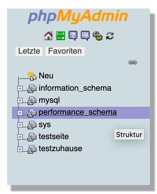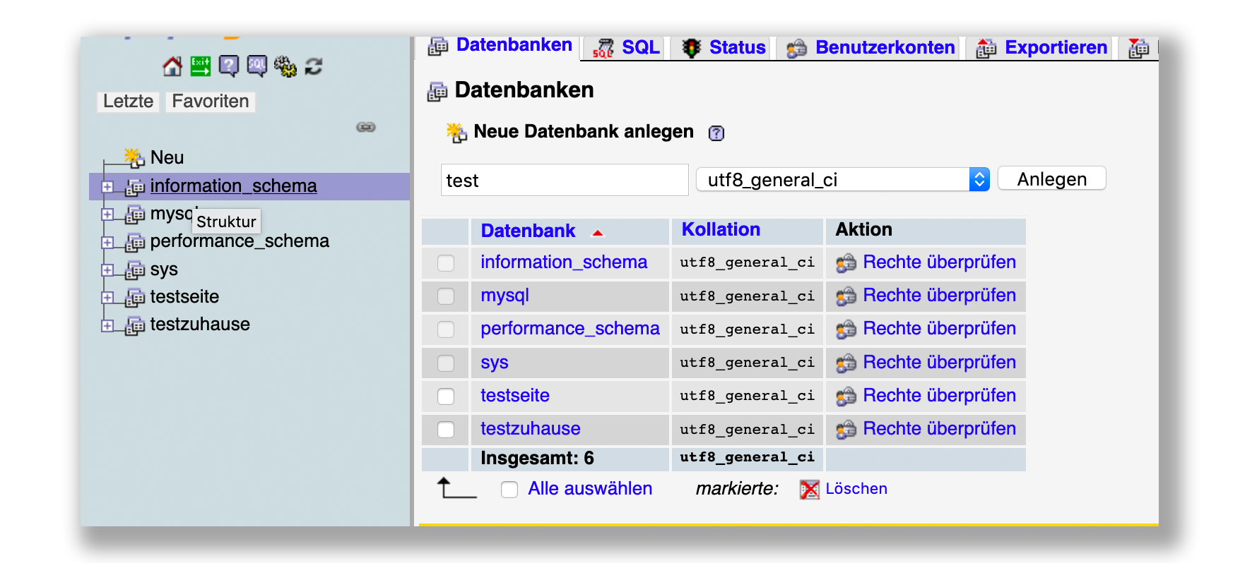 Dann auf PHPMYADMIN Das Fenster mit der Datenbank öffnet sich