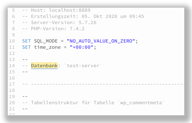 In unserer lokalen Datenbank müssen wir bevor wir sie hochladen einige Veränderungen vornehmen, damit nicht der "lokalhost", sondern der eigentliche Server von Wordpress angesprochen wird.