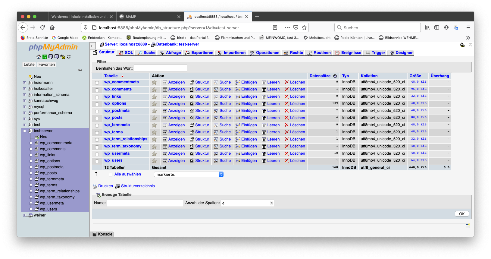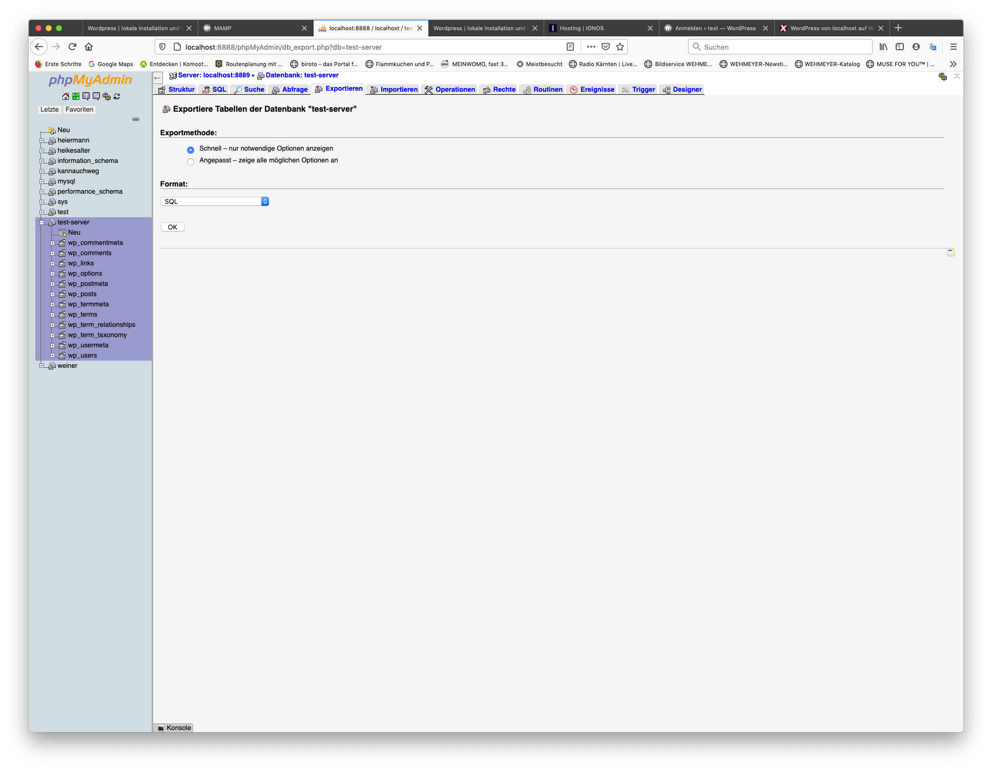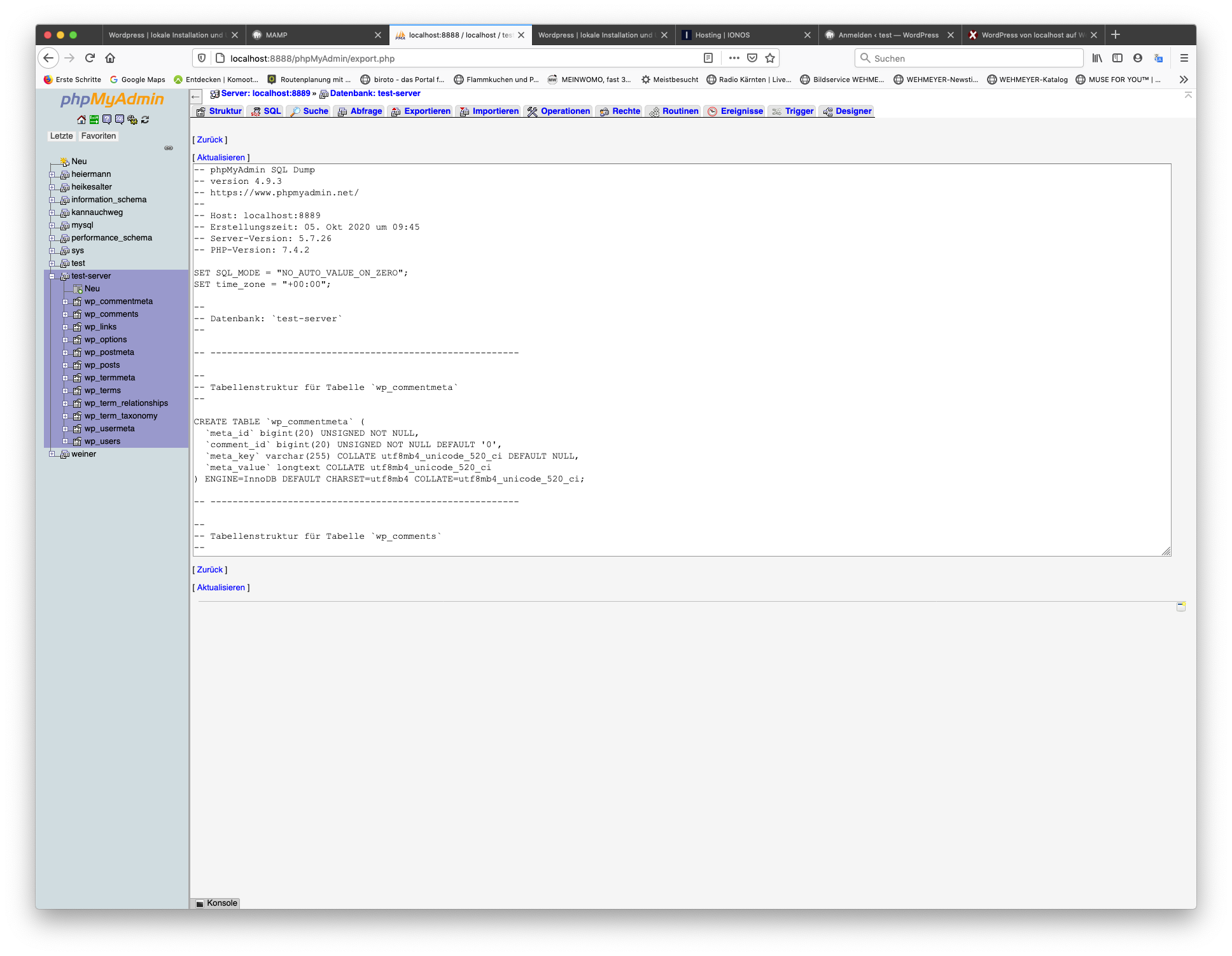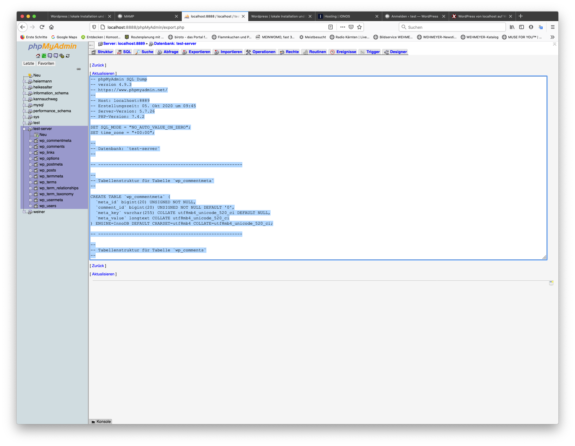 Die Datenbank "test-server" wird später noch verändert und auf den Server des Host kopiert. Wenn der lokale Server nicht mehr benutzt werden soll, kann man sich diesen Schritt sparen.
