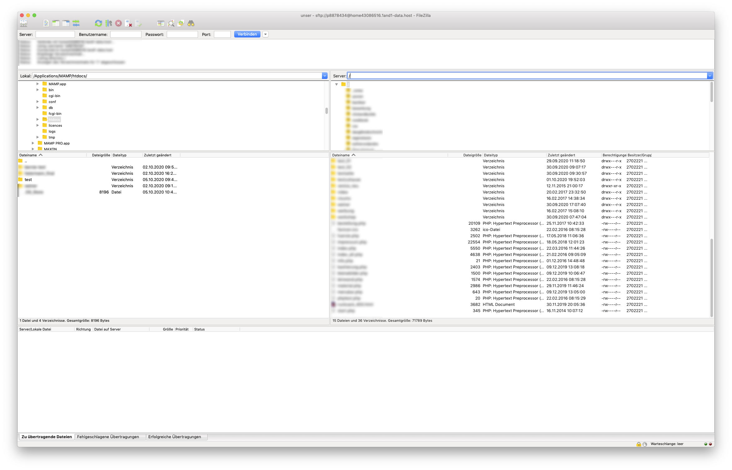 Mit einen geeigneten FTP-Programm, z. B. Filezilla, den Ordner der lokalen Website in das Stammverzeichnis des Host-Servers laden.