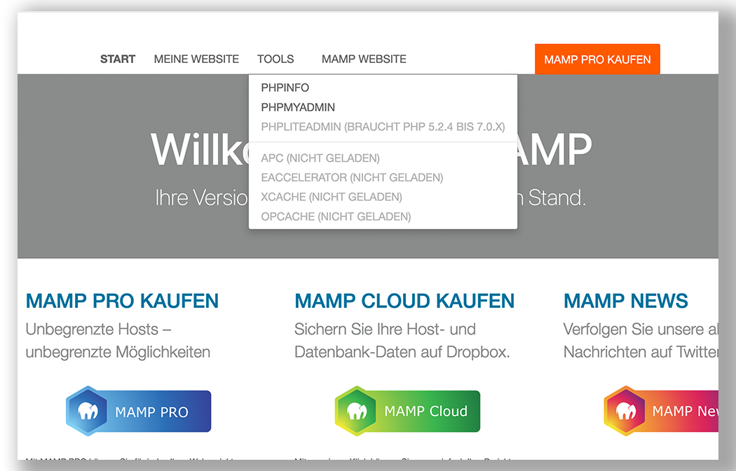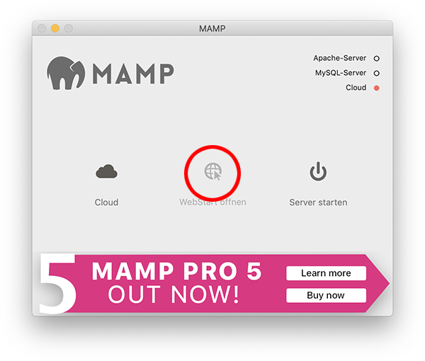 Beim Öffnen von MAMP öffnet sich folgendes Fenster.