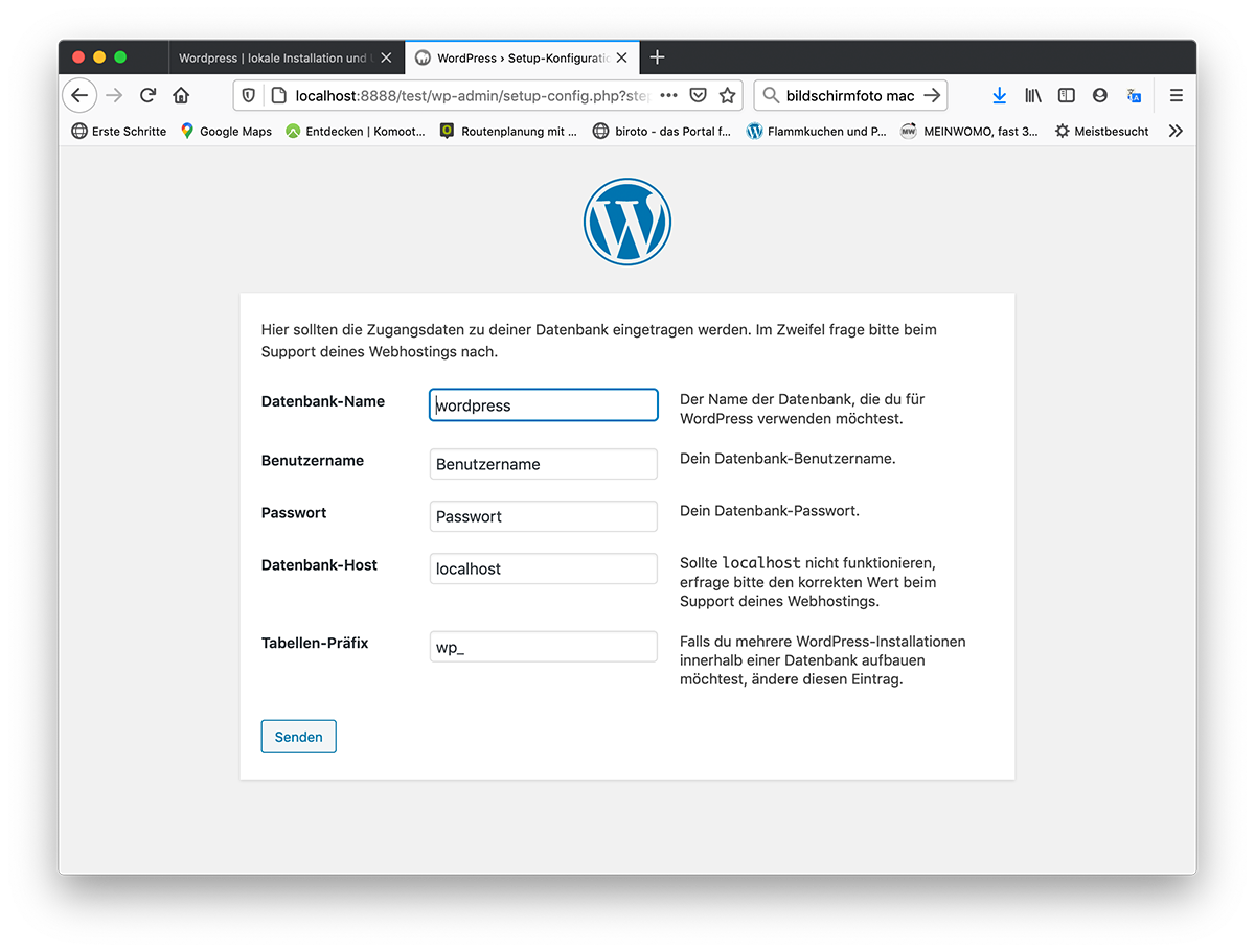 Um Wordpress auf dem lokalen Rechner einzurichten, muss man eine Serverumgebung schaffen. Dazu installiert man z. B. eine freie Software wie MAMP.Einfach downloaden und der Installationsanletung folgen.Damit hat man den Ersten Schritt erledigt.