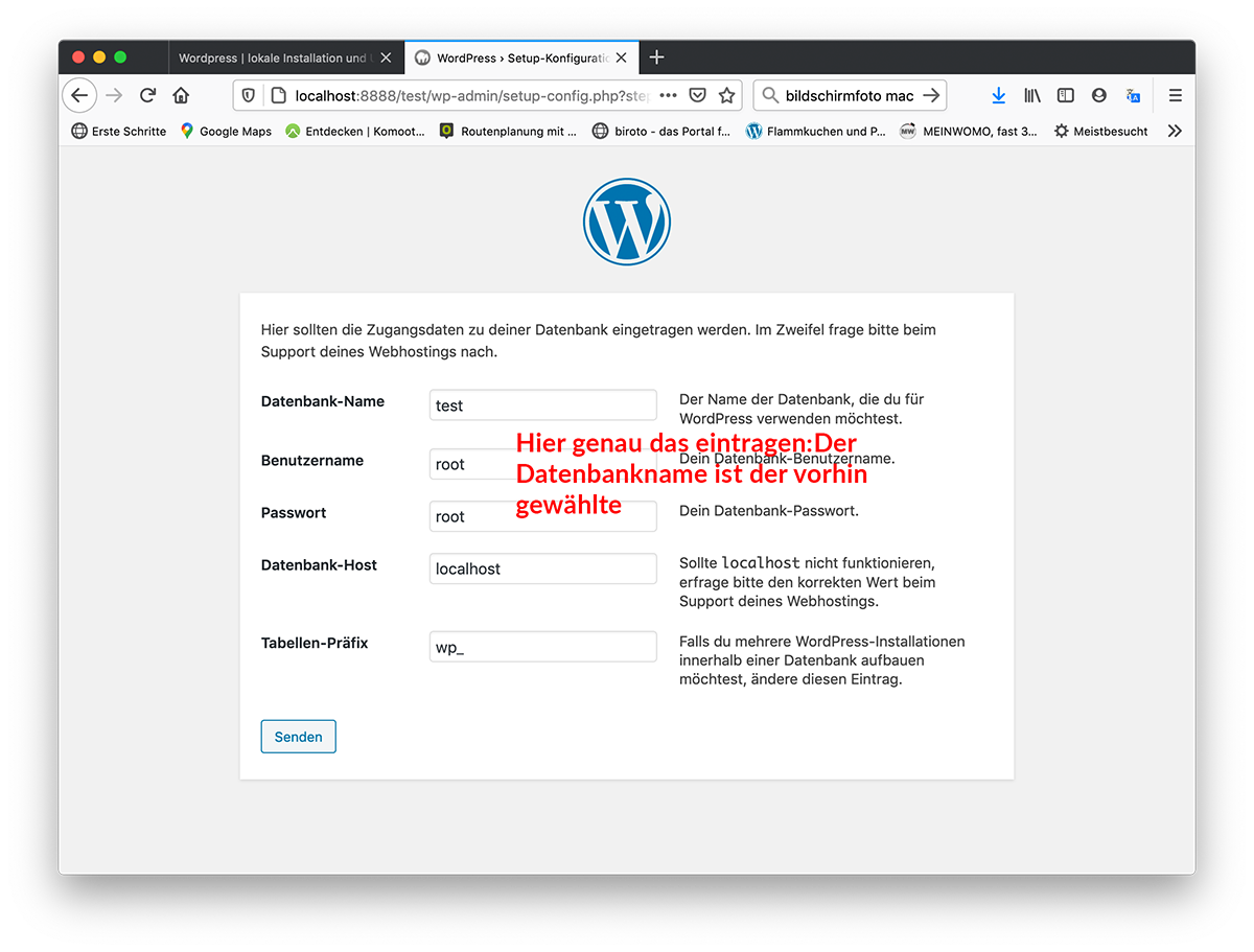 Unbedingt auf richtige Schreibweise achten, kleine Schreibfehler beim einfügen der URL führen zu nichtfunktionieren. Die Vorsilbe WP_ am Anfang mus ggf. geändert werden, falls man beim lokalen einrichten von Wordpress eine ander Vorsilbe gewält hat als das vorgeschlagene WP_.